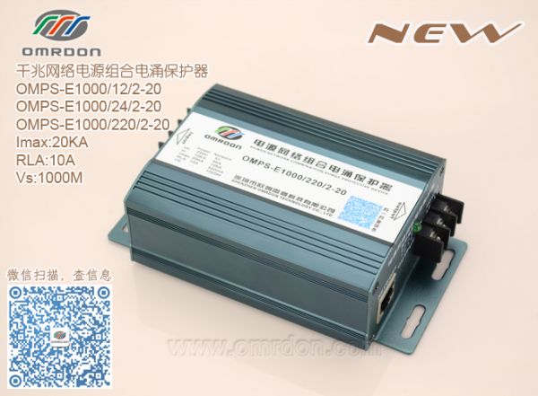 歐姆雷盾(omrdon)OMPS-E1000/12/2-20,OMPS-E1000/24/2-20,OMPS-E1000/220/2-20千兆網絡電源組合電涌保護器(又稱:電源網絡二合一防雷器,電源網絡二合一避雷器,電源網絡二合一電涌保護器)是依據IECGB標準設計,主要用于各類弱電設備、安防設備、電信設備、網絡設備的電源和1000M網絡信號線路的雷擊電磁脈沖(LEMP)保護,是一體化多功能電涌保護器。